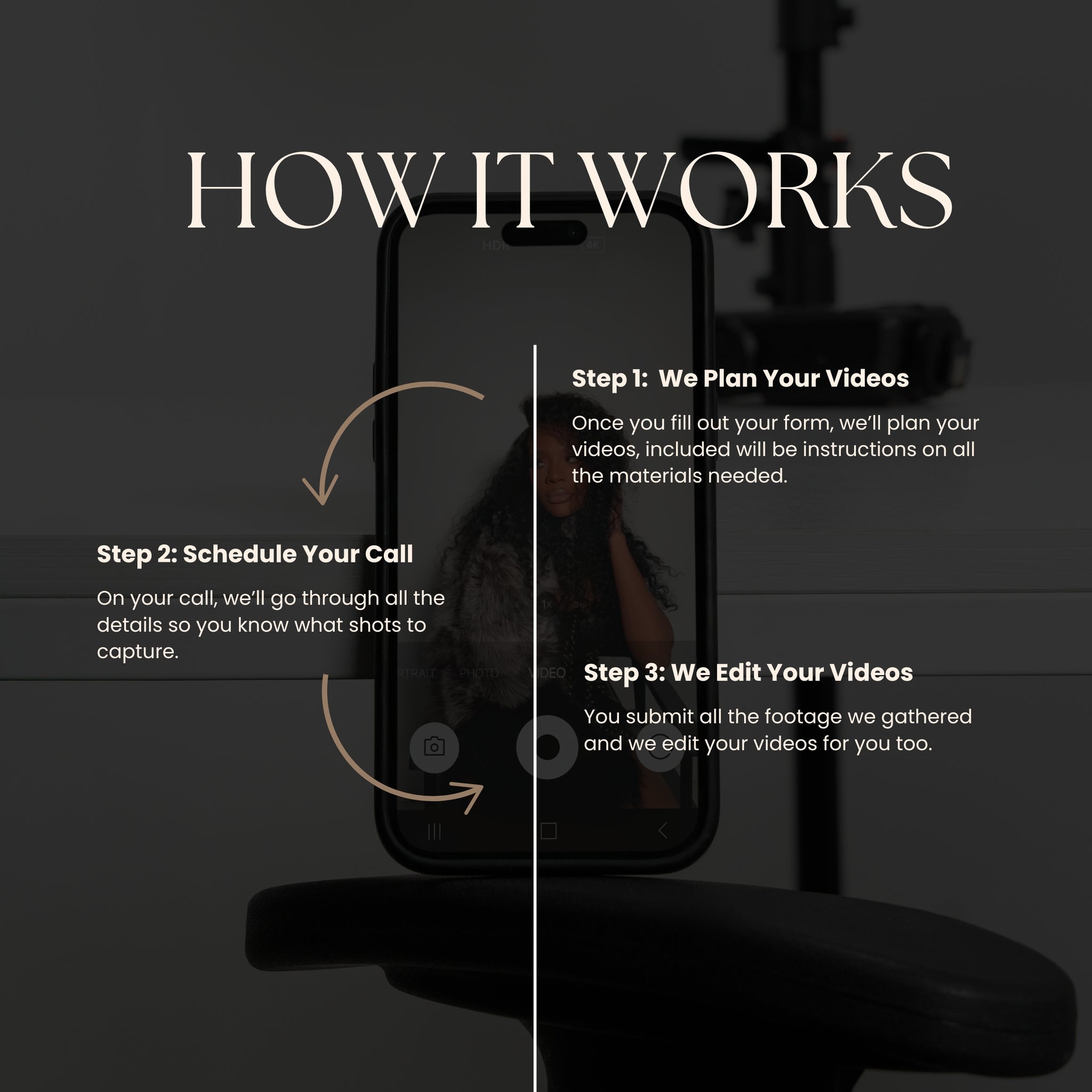 - 1-hour Virtual Video Direction Session: We plan the shots, script, and overall concept of your video together.